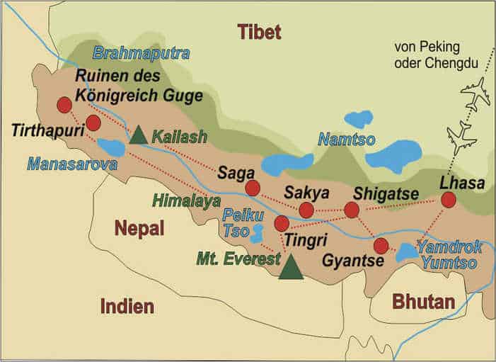 Einreisebestimmungen:Deutsche, Österreichische und Schweizer Staatsangehörige benötigen für die Einreise nach China (Tibet) ist einen noch 6 Monate über das Ausreisedatum hinaus gültigen Reisepass und ein Visum. Sie erhalten von uns im Rahmen der Buchungsabwicklung alle wichtigen Dokumente und eine Anleitung zur Visumbeschaffung. Nach Erteilung des Visums benötigen wir von Ihnen eine Kopie des Visums zur Beantragung des Permits für Tibet. Die Kosten für ein Visum inkl. Gebühren beträgt ca. 190,- EUR.